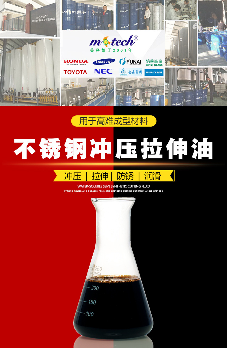 美科不銹鋼拉伸油,含大量極壓劑,特別用于高難度成型,如不銹鋼、鈦、合金鋼、表帶、表殼的沖壓加工.