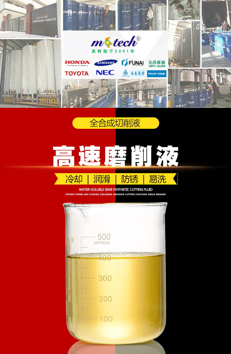 東莞美科高速磨削液,借鑒國外同類先進產品,使用最新配方配制而成。冷卻性能好,抗硬水性能佳,使用壽命長。適用于不銹鋼、銅鋁合金、合金鋼等有色金屬和黑色金屬材料的平面磨、無心磨、外圓磨等金屬磨削加工,能有效提高金屬工件表面的光潔度。【美科切削液全國招商火熱進行中,誠邀您的加盟!】